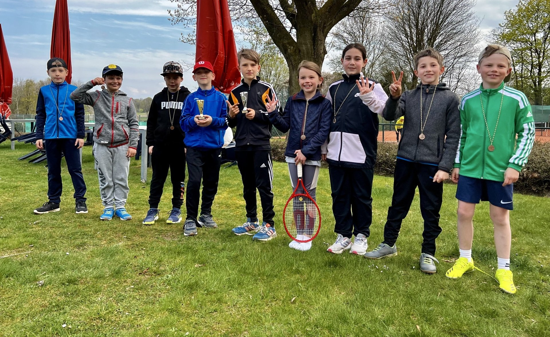 Unser erstes Turnier seit längerer Zeit war ein voller Erfolg. Organisiert von Neu-TCTVler André Freitag, traten am letzten Aprilwochenende 21 Kinder an, um in ihren Altersklassen mit anderen Jugendspielern und -spielerinnen um Punkte, Medaillen und Trophäen zu kämpfen. Vor allem aber sollten sich die Kinder kennenlernen und Lust aufs gemeinsame Spielen bekommen. In der U8-Klasse traten zwar nur 5 Teilnehmer an – Nick, Mara, Finn, Fiete und Edgar – aber schon hier gab es einige spannende Duelle. Am Ende behielt Edgar Adler, ebenfalls neu im Club, die Oberhand. Und der Pokal für den zweiten Platz ging an Fiete Kittel. Gespielt wurden die U8-Partien auf dem nagelneuen Kleinfeld, das mit Hilfe der Volksbank’schen Crowdfunding-Plattform Die Altersklasse U10 verzeichnete die meisten Anmeldungen. Und auch hier gab es einige sehr spannende, enge Matches. Da es für viele der Kids noch ziemlich neu war, Punkte zu zählen und sich korrekt aufzustellen bei Aufschlag oder Return, halfen einige Freiwillige dabei, die Regeln einzuhalten. Natürlich auch bei der U8. Der U10-Wettbewerb erstreckte sich über das gesamte Wochenende und am Sonntag morgen zeichnete sich ab, wer um die vorderen Plätze kämpfen würde. Am Ende obsiegte Neumitglied Jonas Freitag im entscheidenden Match über Paul Müller. Auf den weiteren Plätzen landeten mit Lilo Kittel und Hivda Ispir zwei Mädels, die sich bis zuletzt Hoffnung auf noch bessere Platzierungen machen konnten. In der Junioren-C-Klasse mussten die Teilnehmer aus organisatorischen Gründen schon früh am Samstag antreten. Hier machten die letztjährigen Regionalklassenmeister Arve Freese und Josh Holzmann das Ding unter sich aus – mit dem glücklicheren Ende für Arve. Am Ende des Turniers gab es allerdings nur Medaillengewinner. Auch die, die ohne Sieg den Platz verlassen mussten, haben großartig gekämpft und vor allem auch tapfer durchgehalten. Großen Respekt an alle, die sich ins kalte Wasser getraut haben und jetzt in ihrer Jahrgangsstufe an der Pyramidenspitze unserer Clubrangliste stehen! Eine Verlosung gab es übrigens auch noch: Für jedes Kind wurde ein benamter Tennisball in einen Beutel gesteckt. Aus diesem zog Glücksfee Nadine den U10-Spieler Paul Meyer als Gewinner eines Tickets für das Damenfinale und Herrenhalbfinale bei den Hamburg Open 2022 – und gleich danach zufällig auch noch dessen Schwester Mara. Da die Gewinner – trotz aller Freude bei den Kids – leider an diesem Tag keine Zeit haben, wird über die Verwendung der Tickets noch entschieden. Fazit: der erste Kids Cup war definitiv nicht der letzte! Wir freuen uns, dass wir auf diese Weise auch die Tradition der Clubmeisterschaft reanimieren konnten. Weitere Infos zur Clubrangliste und Clubmeisterschaft findest du hier.